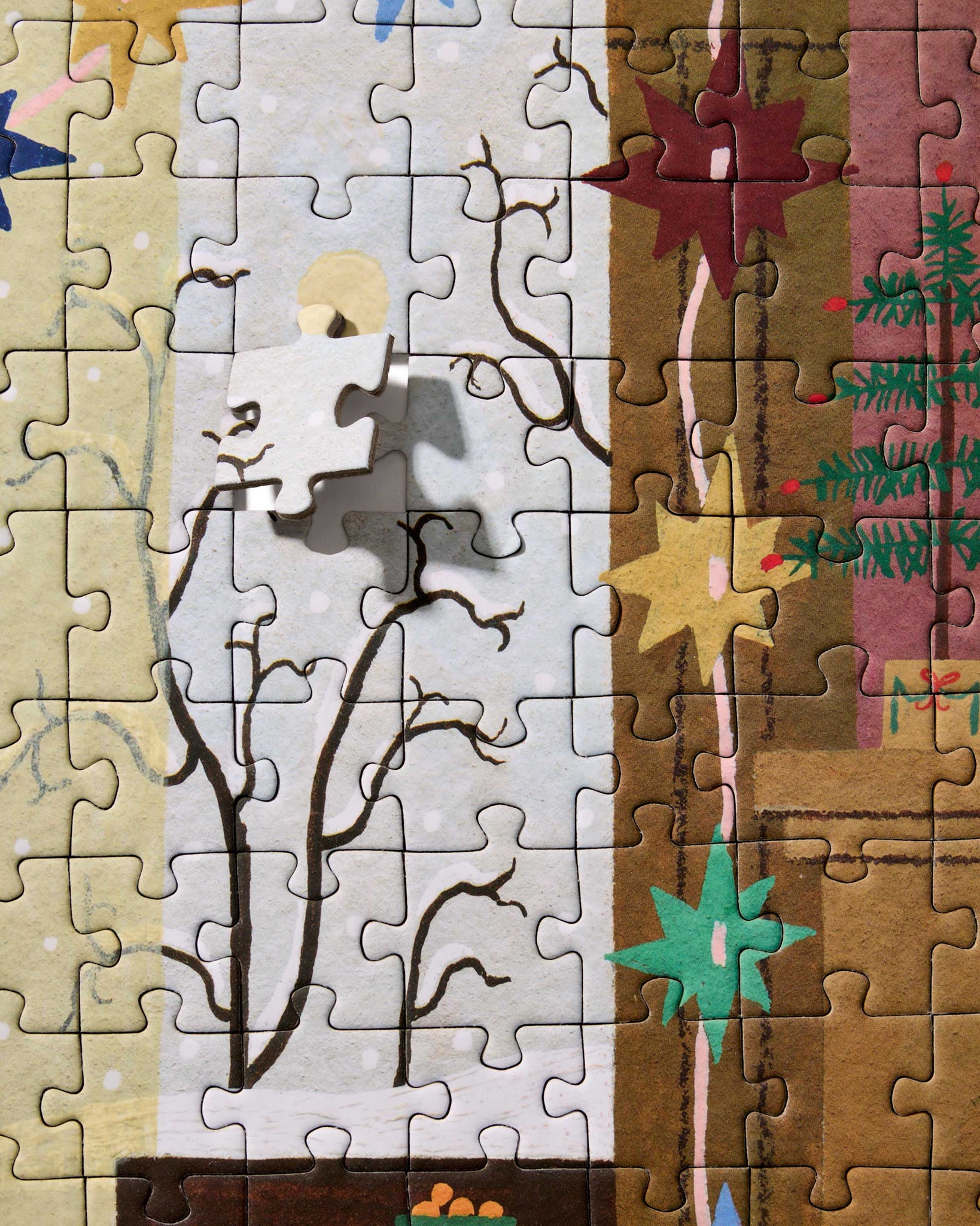 Yelena Bryksenkova's charming 500-piece puzzle brings to life the cozy ritual of preparing for a winter walk on Christmas day. Watch as eager dogs wait by the door, tails wagging, while you bundle up in layers of warmth—scarves, mittens, and woolen hats. The scene captures that magical pause between the comfort of home and the adventure that awaits in the glistening snow with your four-legged companions.