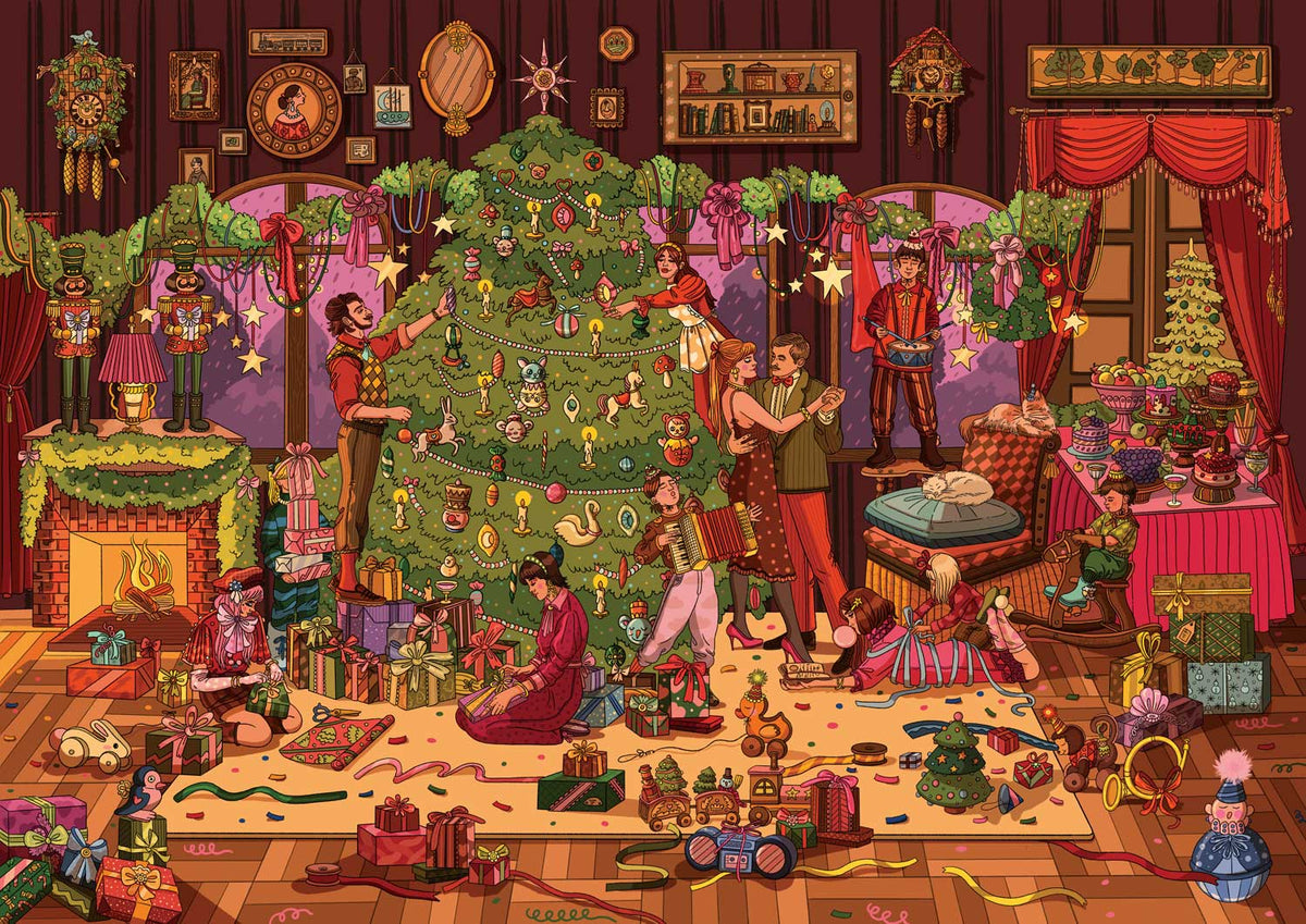 This enchanting 1000-piece puzzle by Mihaela Karadjova celebrates the heart of Christmas magic through music, laughter, and the joy of giving. The artwork beautifully captures the warmth and togetherness that make the holiday season so meaningful. Experience the connection and wonder of Christmas as you piece together this festive scene that nourishes the heart and soul. Perfect for sharing the magic of the season with loved ones.